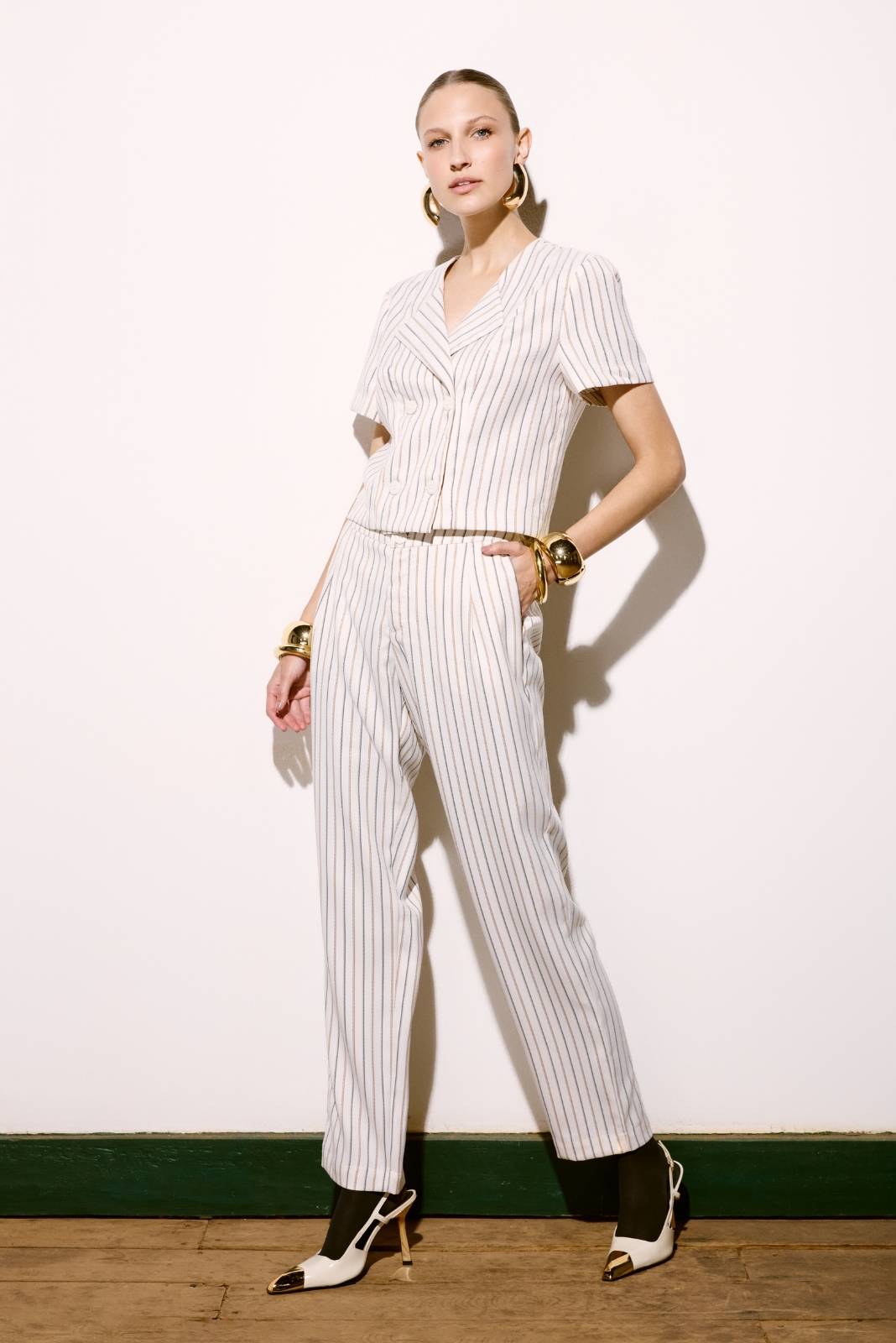 Conjunto de Calça e Blazer Manga Curta Listrado