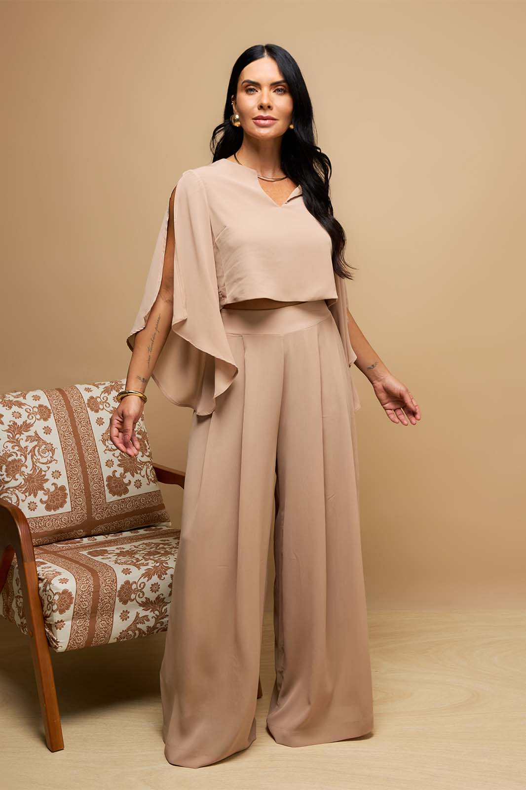 Sinônimo de elegância contemporânea. A blusa com mangas amplas e recortes estratégicos traz movimento e sofisticação ao look, enquanto a modelagem cropped garante modernidade na medida certa. A calça pantalona com cintura marcada e caimento fluido alonga a silhueta e proporciona conforto absoluto, ideal para quem busca se sentir poderosa sem abrir mão da leveza. O tom neutro confere versatilidade, permitindo composições que vão do evento formal ao encontro casual com poucos toques de styling. Um visual que transmite presença, sem esforço. Composição: 100% Poliéster. Modelo está usando tamanho P. Para maior conservação da sua peça: - Leia com atenção a etiqueta de composição localizada no interior da sua peça, nela estará o que é permitido ou proibido para cada tipo de tecido - Lave à mão com sabão neutro e seque à sombra preferencialmente - Evite deixar o produto de molho, principalmente com alvejantes ou produtos usados para tirar manchas - Verifique a etiqueta de composição e certifique -se se a peça pode ser passada com ferro de passar. Ainda que possa, passe a roupa do lavo avesso. |