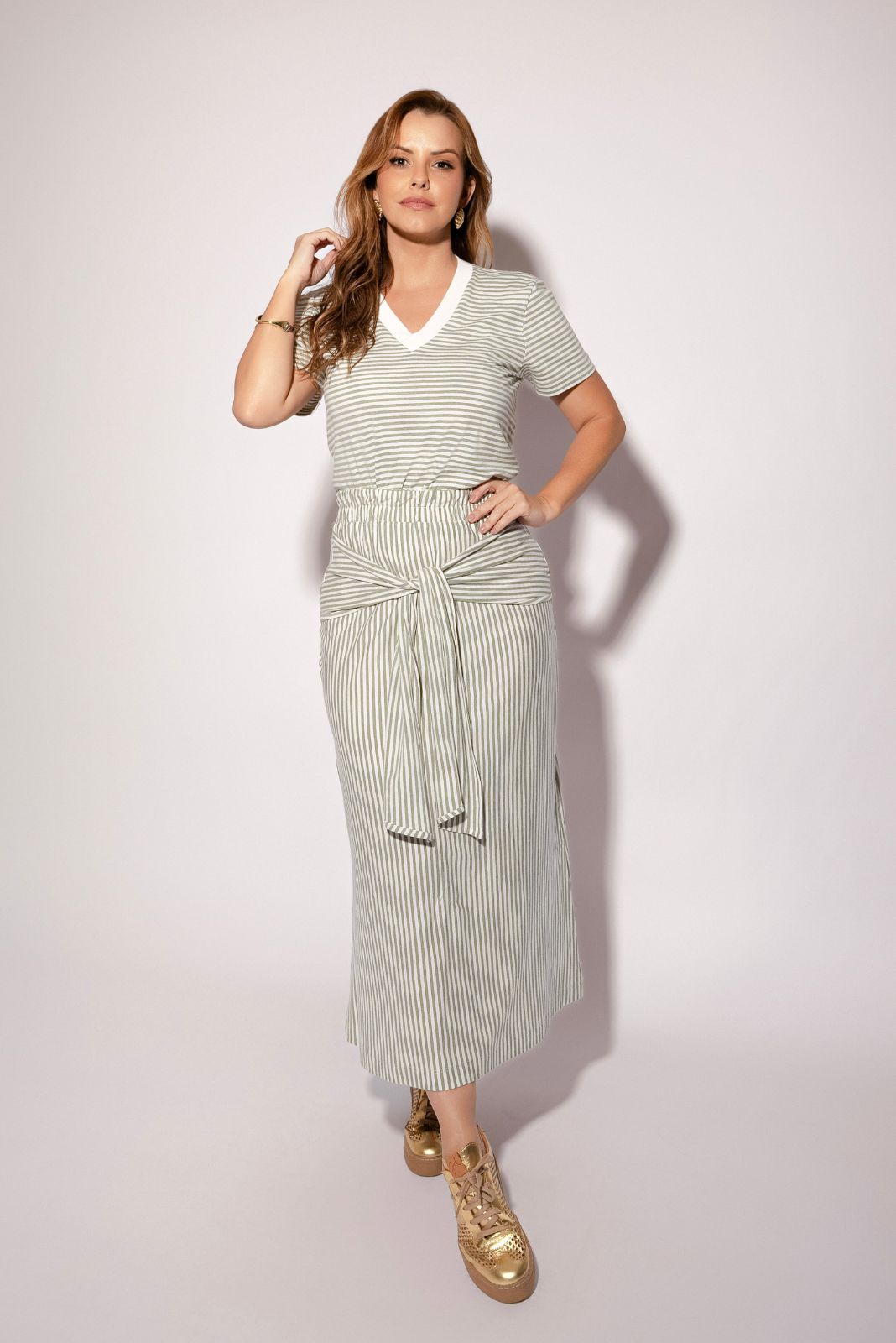 Conjunto Listrado de Saia Longa e Blusa Verde