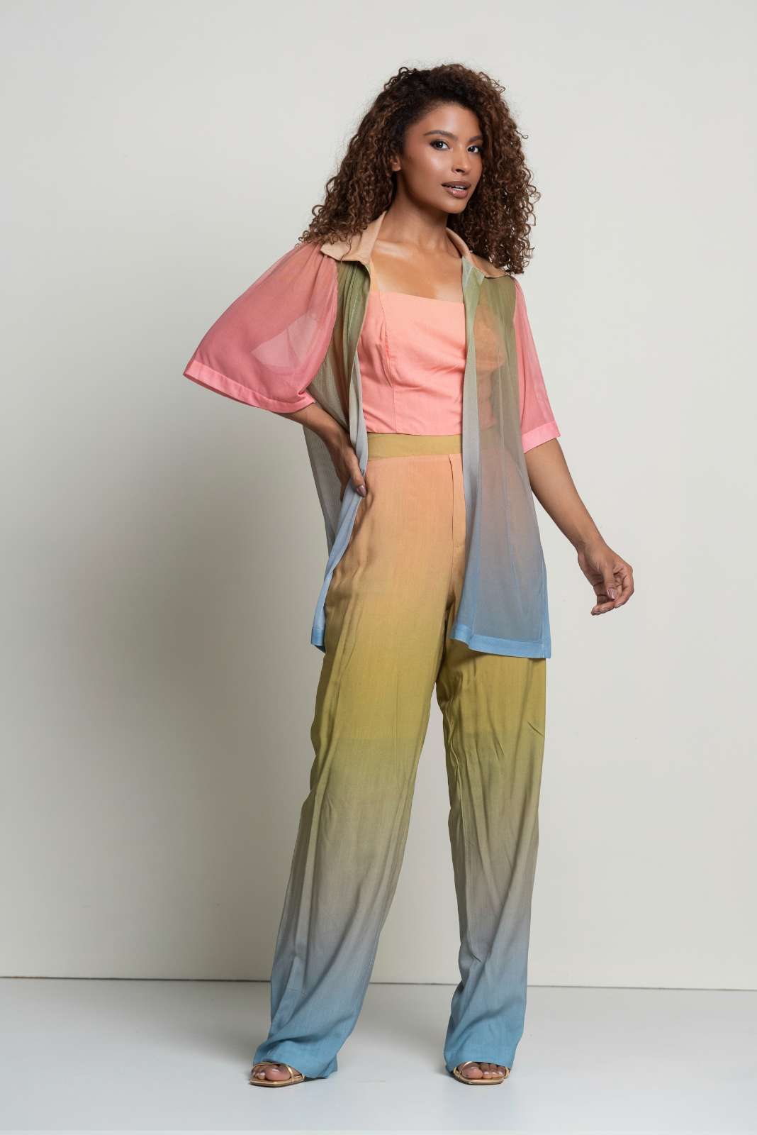| Descubra a combinação perfeita entre leveza, estilo e sofisticação com este conjunto de três peças. Com uma paleta de cores que evoca os tons suaves do pôr do sol, o conjunto inclui uma blusa cropped, calça fluida e um kimono transparente de mangas curtas, que juntos formam um look moderno e despojado. A transparência do kimono confere movimento e elegância, criando um efeito sobreposição que valoriza o visual sem pesar. Ideal para eventos casuais chiques, passeios ao ar livre e momentos em que você quer se destacar com conforto e originalidade. Este conjunto é a escolha perfeita para mulheres que buscam expressar sua personalidade única através da moda. Composição: Calça e Top- 100% Viscose. Kimono- 96% Poliéster e 4% Elastano. Modelo está usando tamanho P. Para maior conservação da sua peça: - Leia com atenção a etiqueta de composição localizada no interior da sua peça, nela estará o que é permitido ou proibido para cada tipo de tecido - Lave à mão com sabão neutro e seque à sombra preferencialmente - Evite deixar o produto de molho, principalmente com alvejantes ou produtos usados para tirar manchas - Verifique a etiqueta de composição e certifique -se se a peça pode ser passada com ferro de passar. Ainda que possa, passe a roupa do lavo avesso. |