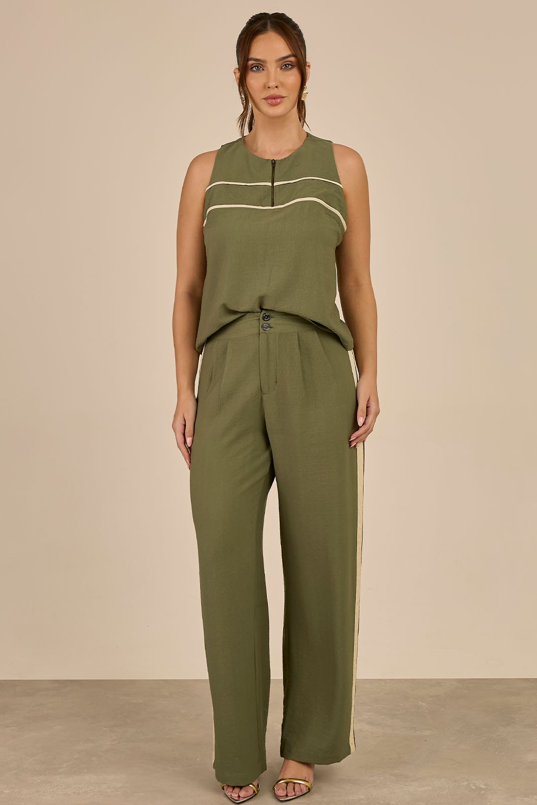 Esse conjunto é a escolha perfeita para quem busca sofisticação com um toque de modernidade. A blusa sem mangas apresenta detalhes de recorte e fechamento frontal com zíper, trazendo um charme sutil e contemporâneo. A calça de modelagem reta garante conforto e fluidez, enquanto a faixa lateral em contraste adiciona um toque esportivo e refinado, alongando a silhueta. A cor versátil permite combinações elegantes para diversas ocasiões, do ambiente de trabalho a encontros mais casuais. Um look atemporal, que une estilo e praticidade sem perder a sofisticação. Composição: 85% Viscose e 15% Poliamida. Modelo está usando tamanho P. Para maior conservação da sua peça: - Leia com atenção a etiqueta de composição localizada no interior da sua peça, nela estará o que é permitido ou proibido para cada tipo de tecido - Lave à mão com sabão neutro e seque à sombra preferencialmente - Evite deixar o produto de molho, principalmente com alvejantes ou produtos usados para tirar manchas - Verifique a etiqueta de composição e certifique -se se a peça pode ser passada com ferro de passar. Ainda que possa, passe a roupa do lavo avesso. |