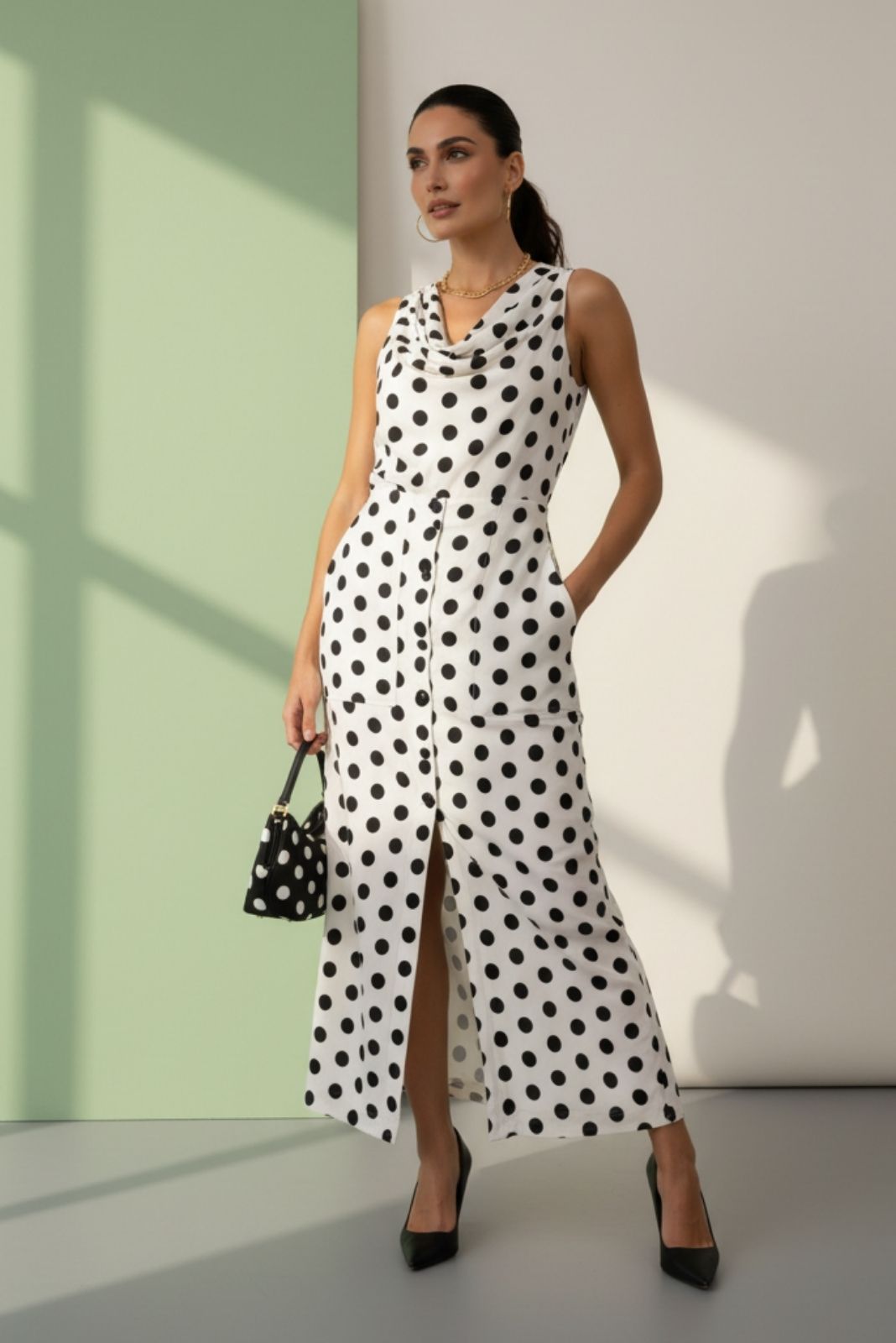 Conjunto de Saia Longa e Blusa com Poás